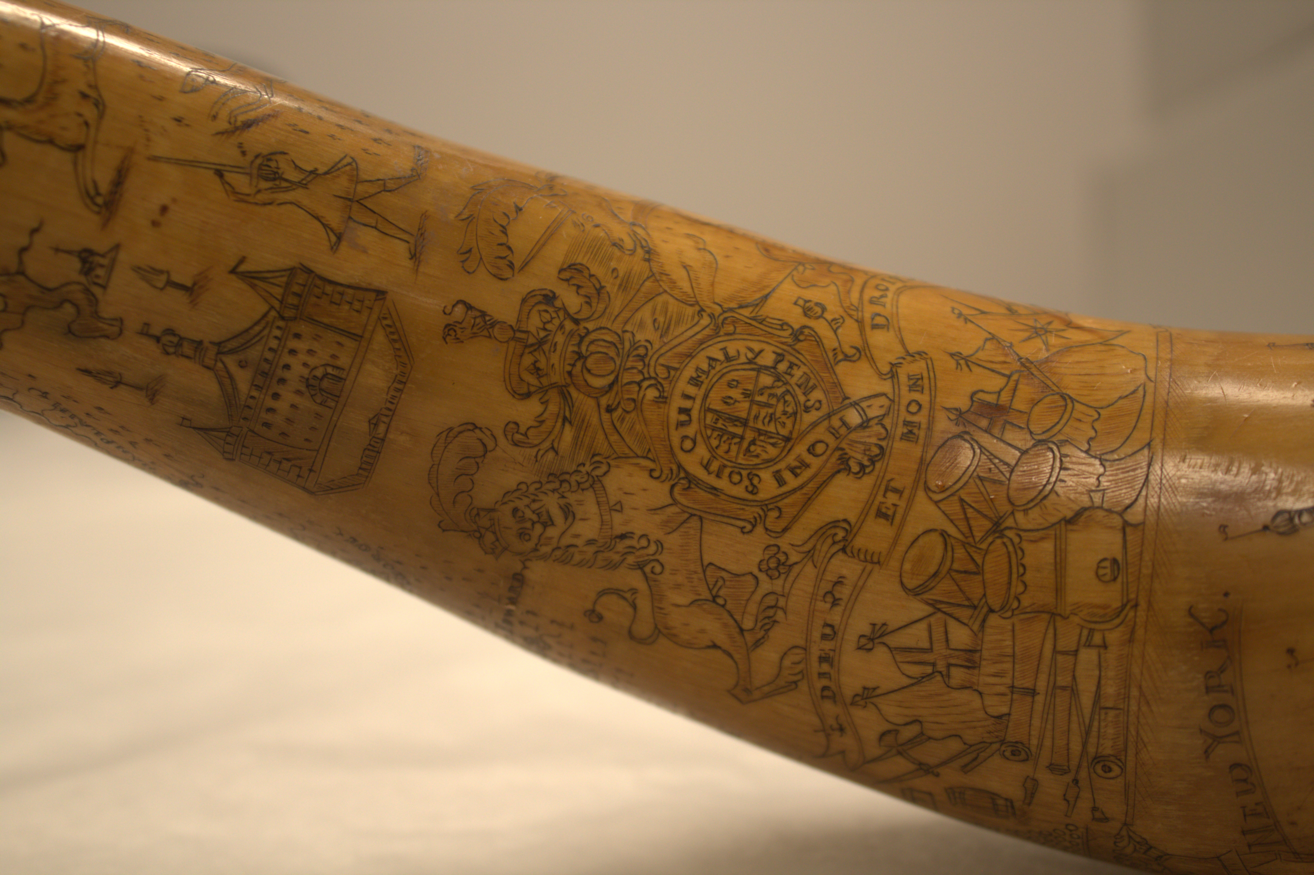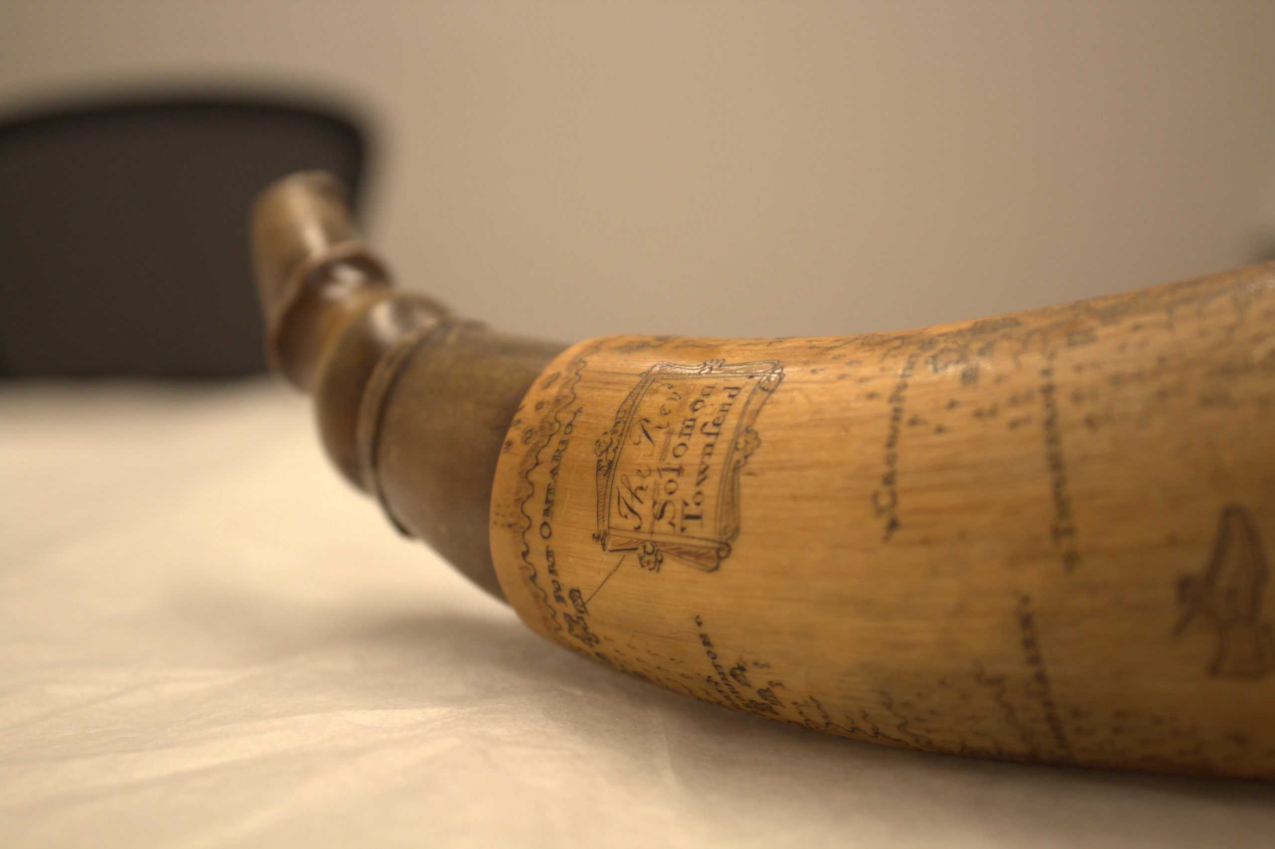 “Si quaeratis monumenta circumspicite. If you seek memorials, look around you.”¹ These words, written by nineteenth-century historian Thomas W. Bicknell, speak to the way that objects hold powerful connections to the past. Not only can they provide a tangible example of an important event in history, they can also provide emotional connections to the people who came before us. I was fortunate enough to encounter one such object during my first weeks working at Raynham Hall Museum: an engraved powder horn from the mid-eighteenth century.
