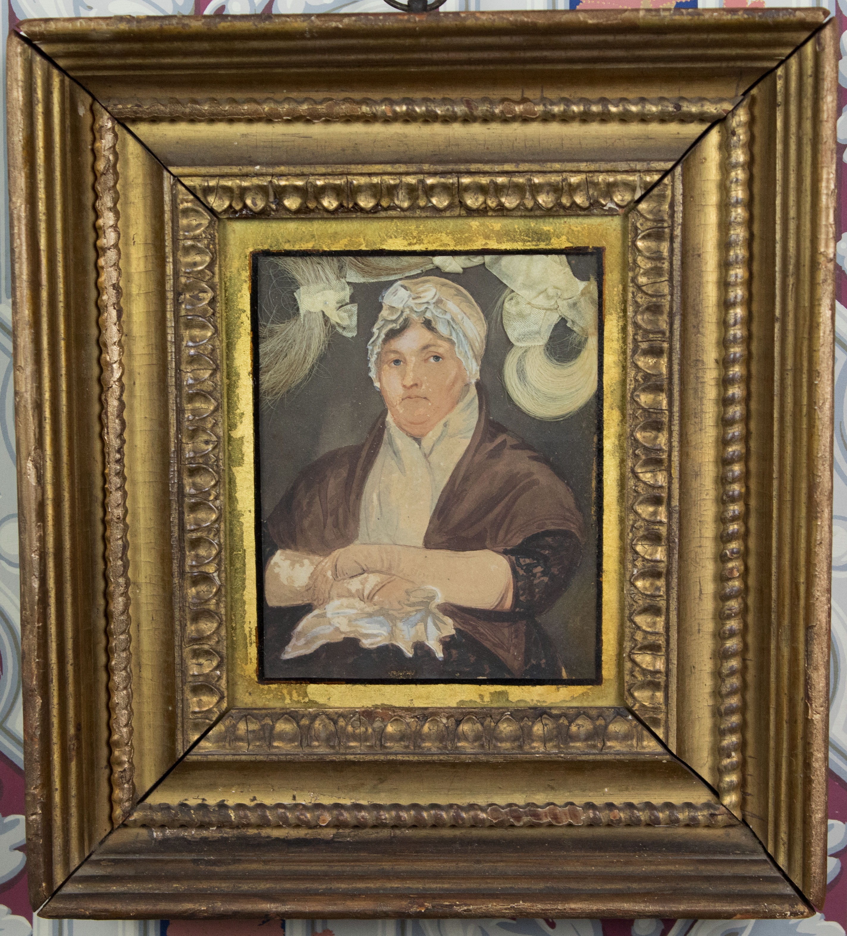The last entry is a remark on “My little brother Solomon.” While reading this description detailing the life of his brother who passed away at 2 years and 8 months of age (I may have cried at my desk), I found some interesting details that relate to paintings that were donated to the museum in 2022. We were given two watercolor portraits, one of Solomon Townsend I (1746-1811), and the other of Anne Townsend (1725-1823). We were incredibly enthusiastic about receiving these paintings from a descendant, though we had some questions. Comparatively, Solomon looks much younger than Anne, so we thought it may have been a portrait of one of Solomon and Anne’s children, and that there may have been a suite of family portraits. There are also three locks of hair inside the framed portrait of Anne. This makes me wonder, to whom do the locks of hair belong? Giving hair keepsakes during the 19th century was common practice, and were given as gifts to family and friends, or as a memorial of a lost loved one.