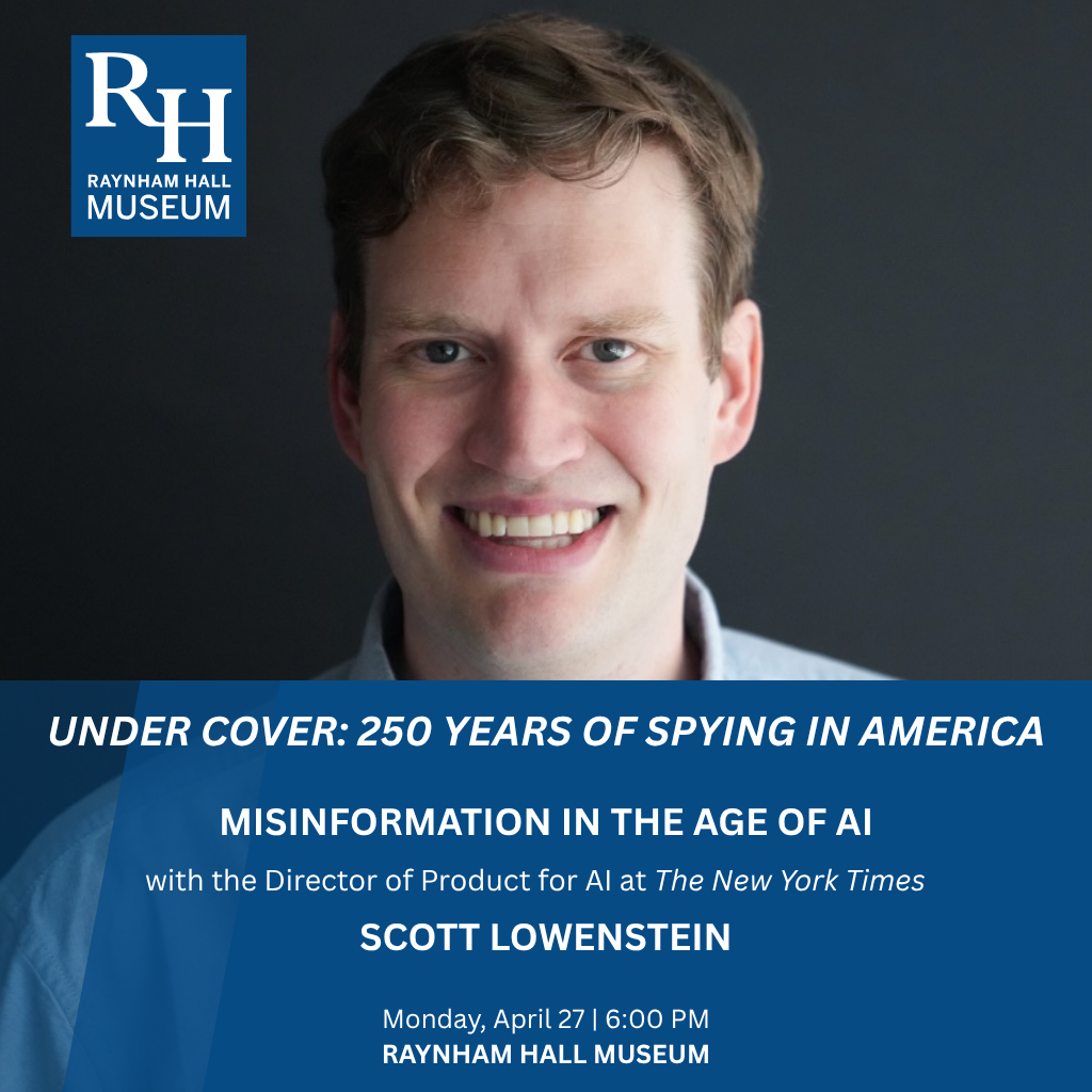 At a place like Raynham Hall — home of a wartime intelligence agent for George Washington — it feels fitting to ask: What happens when the tools for spreading false information become more powerful than ever? Misinformation is nothing new, but social media and artificial intelligence have introduced an entirely new frontier, making it easier than ever to create and share text, images, and video that are increasingly indistinguishable from the real thing. This talk traces how we got here, explores what’s at stake in our current moment, and offers a window into the promising work researchers, journalists, and technologists are doing to help us navigate a world where seeing — and reading — may no longer be believing.